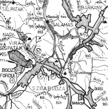 Zömében román anyanyelvű lakosságát a bodolai Béldi és a zágoni Mikes család telepítette be Román-Bodza környékéről olcsó munkaerőként. Várossá 1968-ban nyilvánították. Közigazgatási szempontból hozzá tartozik még Fenyős, Virágospatak és a benépesült Tálpatak is (Scrădoasa). A Bodza folyása mentén délkeletre helyezkedik el a régészetben sokat emlegetett Szitabodza, itt találták meg a paleolitikumi ember telephelyét. A medence északkeleti részén terül el Bárkány (Barcani) község is, régi nevén Zágonbárkány, amely az egykori Mikes és Szentkeresztycsalád területén élő jobbágyokból és zsellérekből alakult ki. Hozzá tartozik Ladóc, Salamás (Sărămaş) és a már bemutatott Nagypatak (Valea Mare), amely jelenleg önálló község. Salamás a múlt században alakult ki az ún. Borbáti korcsma környéki házak körül. Bárkány városi alárendeltségű község. Ide telepítették a múlt század végén a bodzakrasznai üveghutát. Az egykori bárkányi huta helyét ma is meg tudják mutatni az öregek. A néphagyomány szerint a helység a nevét is a borcan (románul a befőttes, uborkásüveg) szóból kapta, mert az említett huta csak ilyen üvegeket gyártott. Bárkányban több magyar család él, református kisközössége a zágoni egyházközség filiája. A helységből északra vezető műúton Zágonba érünk. Bodzafordulón fa-, építőanyag-ipar működik. A vidék idegenforgalmi érdekessége a csíkos román népi szőttes, amelyet a minden évben megszervezett, hagyományos Csobánka (Ciobănaşul) elnevezésű népi fesztiválon mutatnak be. Jelkulcs: KK – Kicsi-Kerekbérc, A – Almáshát.