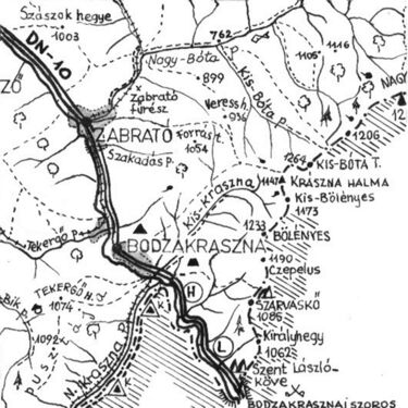 A folyót egyre szűkebb völgyébe kényszeríti dél felől a Szilon-havas, északról pedig a Bodzafordulói hegység kárpáti homokkövekből álló hatalmas tömege. A Bölényes-hegy masszívumának déli szélén magaslik a Szent László köve nevű sziklaformáció, lenn a mélyben sziklaomladékok, így zuhatagról zuhatagra törtet alá a folyó. A Szent László kövénél van megyénk és Buzău megye határa, az egykori Magyarország és Havasalföld/Román királyság államhatára. Ezen a szoroson régen lehetetlen volt átjárni. A közlekedést hegyi utakon, kerülővel bonyolították le. Csupán a XIX. század végén, 1876 és 1896 között építtette meg a sziklákba robbantott műutat Háromszék vármegye törvényhatósága Lécfalvi Gyárfás Győző királyi főmérnök irányításával. Sajnos, a műút korszerűsítése alkalmával lerobbantották a Szent László-kőszikla egy részét. Ennek lábánál került napvilágra 1887-ben az a 16 darab rúdból álló aranykincs, amely bodzakrasznai aranylelet néven ismert a szakirodalomban, s ami némely szakértők szerint a római korból való. Bodzakrasznán Mikes Benedek gróf üveghutát alapított a XIX. század derekán, amely a hagyomány szerint csak kristályüveg készítésére szakosodott. Épületeiről és környékéről működésének idején képeslap is készült. A gyárat 1890 táján áttelepítették Zágonbárkányba. Épületmaradványai ma is láthatók. A Nagy-Kraszna patak völgyét követve kék háromszög turistajelzés mentén feljuthatunk a Szilon-havasra. Zabratóról erdőkitermelő úton, a Keleti-Kárpátok főgerincén keresztül, a Matóbérc- és a Rozsdás-patak völgyén át Kommandóra juthatunk. A megyehatártól néhány kilométerre kitágul a Bodza völgyszorosa és feltűnik a Szilon-havasi víztároló tó festői képe.