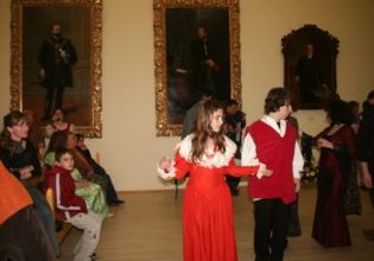 A reneszánsz előadásfolyam alatt aztán a Bartók Terem is lassan ,,felöltözött", a tiszta hangok, előkelő lépések mellett a kort idéző ruhák, hangszerek, tárgyak, az esemény fényképei amolyan reneszánsz otthonná varázsolták a régi városatyák festményeit őrző termet.