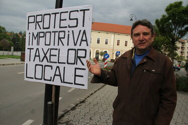 Az egységes adóztatási rendszer miatt kezdett tiltakozó akciót Nagy Gergely Levente magánvállalkozó a sepsiszentgyörgyi polgármesteri hivatallal szemben.