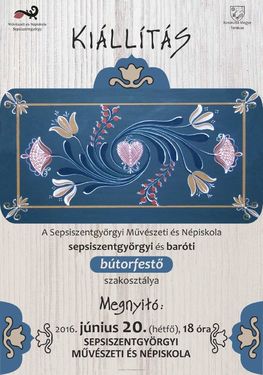 A Kovászna megyei önkormányzat fenntartásában működő Művészeti és Népiskola sepsiszentgyörgyi és baróti bútorfestő-szakosztálya ma 18 órától megnyitja kiállítását az intézmény dísztermében (Sepsiszentgyörgy, Szabadság tér 9. szám). Oktatók: Páll Tünde és Tordai Iluska. A kiállítás június 30-ig tekinthető meg hétköznap 9 és 15 óra között.