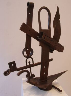 Kovács Géza talán még nehezebb feladatra vállalkozott, mert ő nem formálja az anyagot, hanem egyszerűen újrahasznosítja a fémhulladékot úgy, hogy kollázsszerű műalkotásainak alkotóelemeit eredeti formájukban használja. A művészettörténész szerint ez a munka sokkal több, mint újrahasznosítás, hisz a néprajzkutató gyűjtőmunkájával is felér, ahogy a művész a falvakat végigjárva felfedezi a tárgyakat, amelyekből alkotásai készülnek. Úgy véli, épp ez a felfedezőmunka az alkotó folyamat, amely során megtalálja, továbbgondolja, újraalkotja ezeket a tárgyakat, amelyek csak a gondolattal egyesülve válhatnak műalkotássá: mivel érzelmek kivetülései, líraiságot is kifejeznek, s mert sikerül megőrizniük valamit eredeti rendeltetésükből is, egy különleges ősi, falusi, archaikus világot is felidéznek.