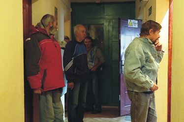 Reggel hét óra: a lakók ébredeznek, mosakodnak, ágyat vetnek, jelentkeznek a gondnoki szobában, aláírják a jelenléti naplót, átveszik a teát és a szendvicset, nyolc órakor elhagyják az éjjeli szállót. Többségük egész nap ténfereg a városban, hárman alkalmi munkából szereznek egy kis jövedelmet, egy férfit nemrég alkalmaztak. „Itt lehet fürödni, tisztában jár az ember, nem hányódik az utcán”– mondja Kiss-Pásztor Sándor, aki feleségével együtt másfél éve húzódik meg a létesítményben. Szülei rég meghaltak, lakás nélkül maradt, jelenleg egy Sepsiszentgyörgy közeli mészárszékben dolgozik ideiglenesen, az asszony egy idős hölgynél segít délutánonként.