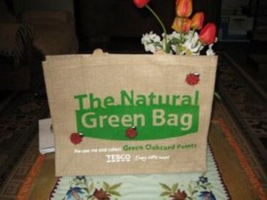 Angol szakos lányunk fordította is a rostos növényi szálakból szőtt formás szatyor reklámszövegét: The Natural Green Bag. Re-use me and collect Green Clubcard Points. TESCO — Természetes Zöld Táska. Használj fel újra, és gyűjtsd a Zöld Klub-kártyapontokat. A kártyapontok azt sejtetik, hogy a táska többszöri használatát valahol valamiképp jegyzik, és használóját a TESCO áruházlánc jutalmazza.