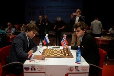 A New York-i döntő hétfő esti folytatásában a 25 éves Carlsen játszott világossal, és a felek csaknem hétórás küzdelem után, a 78. lépést követően adták remire a meccset. Ez volt az eddigi leghosszabb parti, a csata tovább folyatódik. Az 1,1 millió euró összdíjazású, 12 játszmás döntőt az nyeri, aki hamarabb szerez 6.5 pontot. Hat-hat után négyjátszmás rapid mérkőzések, majd ha szükséges, villámpartik következnek. A klasszikus időkontroll szerint 2–2 óra áll rendelkezésre az első 40 lépésre, majd 1–1 óra a következő 20 lépésre, végül 15–15 perc a játszma befejezéséig, ekkor 30–30 másodperc lépésenkénti bónuszidőt is kapnak a felek.