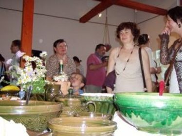 Az agyag útja című tárlaton bemutatták a folyamatokat a nyers agyagtól a korongon át a zománcozott edényig, a falakat a nyári fazekastábor képei díszítették, s a vetítőgép a különböző fázisokat mutatta be. A Kolozsi Attila által vezetett tanfolyam résztvevőinek agyagedényeit — a tányéroktól a csuprokon át a kuglófsütőig — nemcsak megcsodálták, ki is próbálták a megnyitó résztvevői, hisz terített asztal várta a vendégeket, a használati jelleget aláfestendő. A rendezvényen a zenei aláfestést Csibi Szabolcs, Kelemen Pityu és Ségercz Feri biztosította.